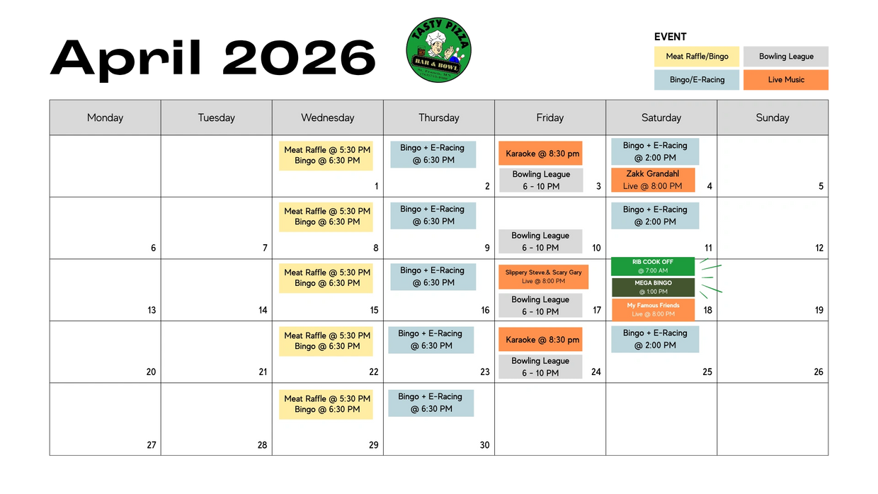 Join us for Tasty’s Rib Cook-Off Saturday, April 18th —a day packed with bold flavors, friendly competition, and great vibes. Local teams go head-to-head for cash prizes and bragging rights while guests enjoy delicious BBQ and vote for their favorites.
